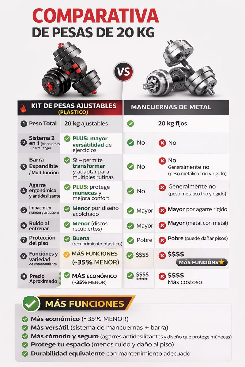 Beneficios kit de pesas de 40 LB + Barra expandible
